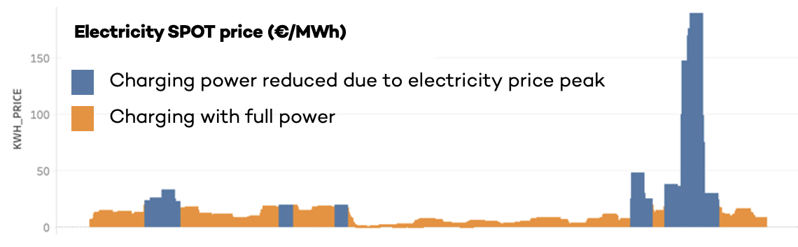 Par exemple, l'opérateur aéroportuaire finlandais Finavia a fourni 58 MWh d'électricité aux véhicules électriques via les chargeurs de son aéroport en un mois. En régulant légèrement la puissance de charge pendant 51 heures (5 % du temps), il a pu économiser 10 % sur le coût d'achat mensuel de l'électricité. L'ajustement de la puissance de charge sur la base des prix de l'électricité de Nordpool (bourse gérant le plus gfrand marché d'énergie électrique d'Europe) est passé inaperçu pour les conducteurs de VE, dont les voitures sont restées en charge pendant plusieurs jours sur le parking de l'aéroport.